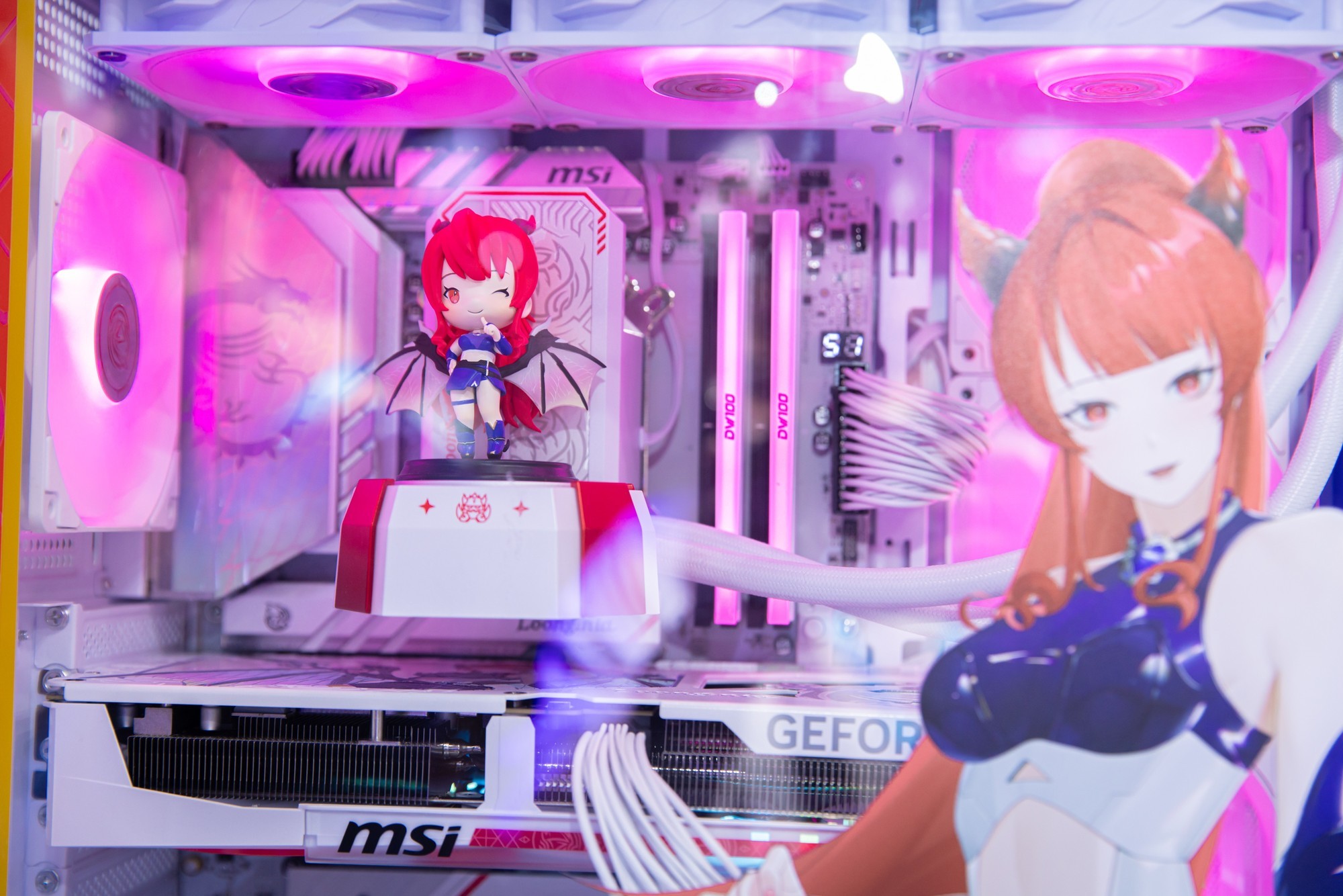 核心定制显卡: 展区C位当属 微星GeForce RTX 5070 Ti 16G MLG EDITION魔龙姬定制版显卡。重磅展出了两款全新深度定制的整机。成为整机设计的点睛之笔,2号机则运用时尚白红配色,更使魔龙姬形象栩栩如生,成为本届展会最受瞩目的科技焦点之一。引爆二次元玩家热情。为现场玩家打造了一场沉浸式的科技电竞狂欢。BilibiliWorld 2025(BW2025)在上海盛大开幕。实现了IP形象与高性能硬件的完美融合。