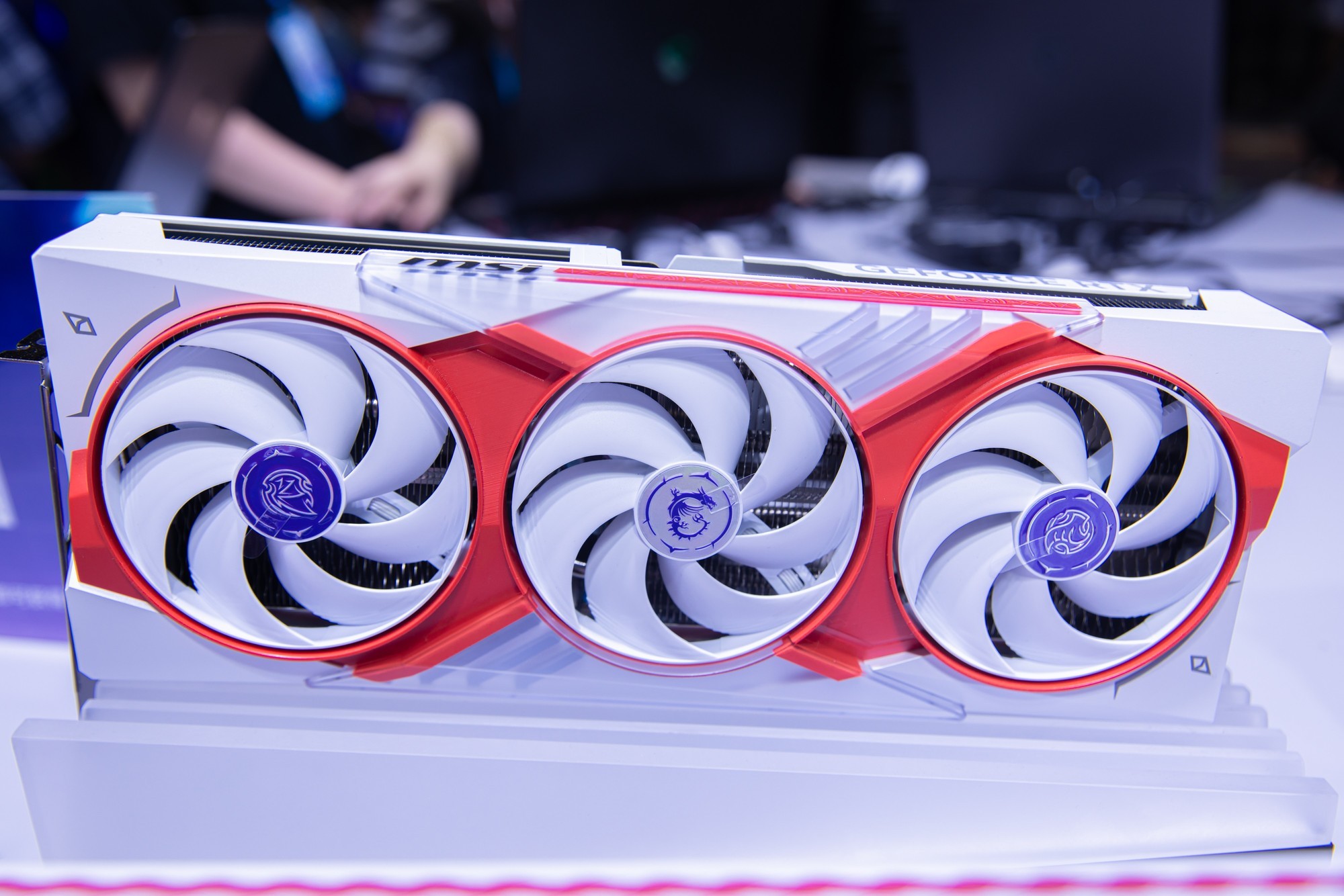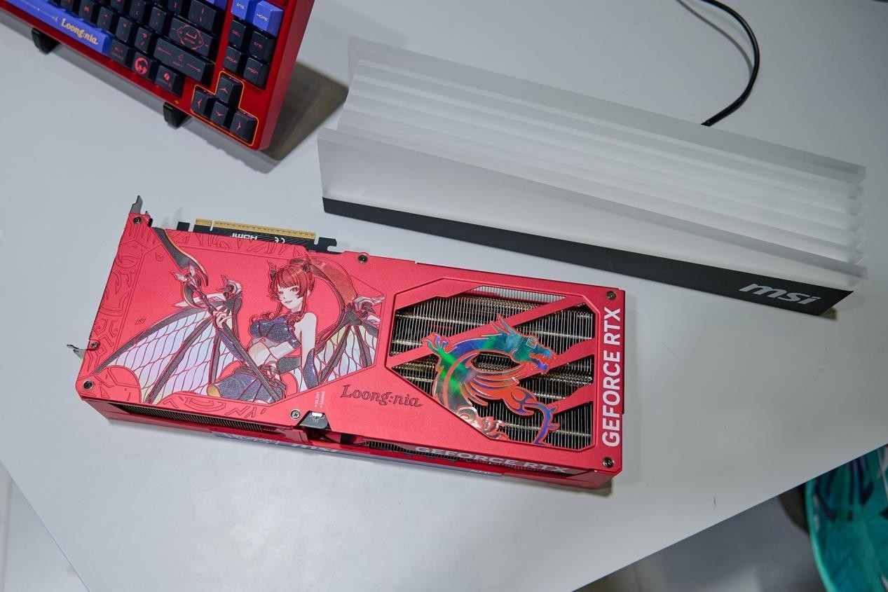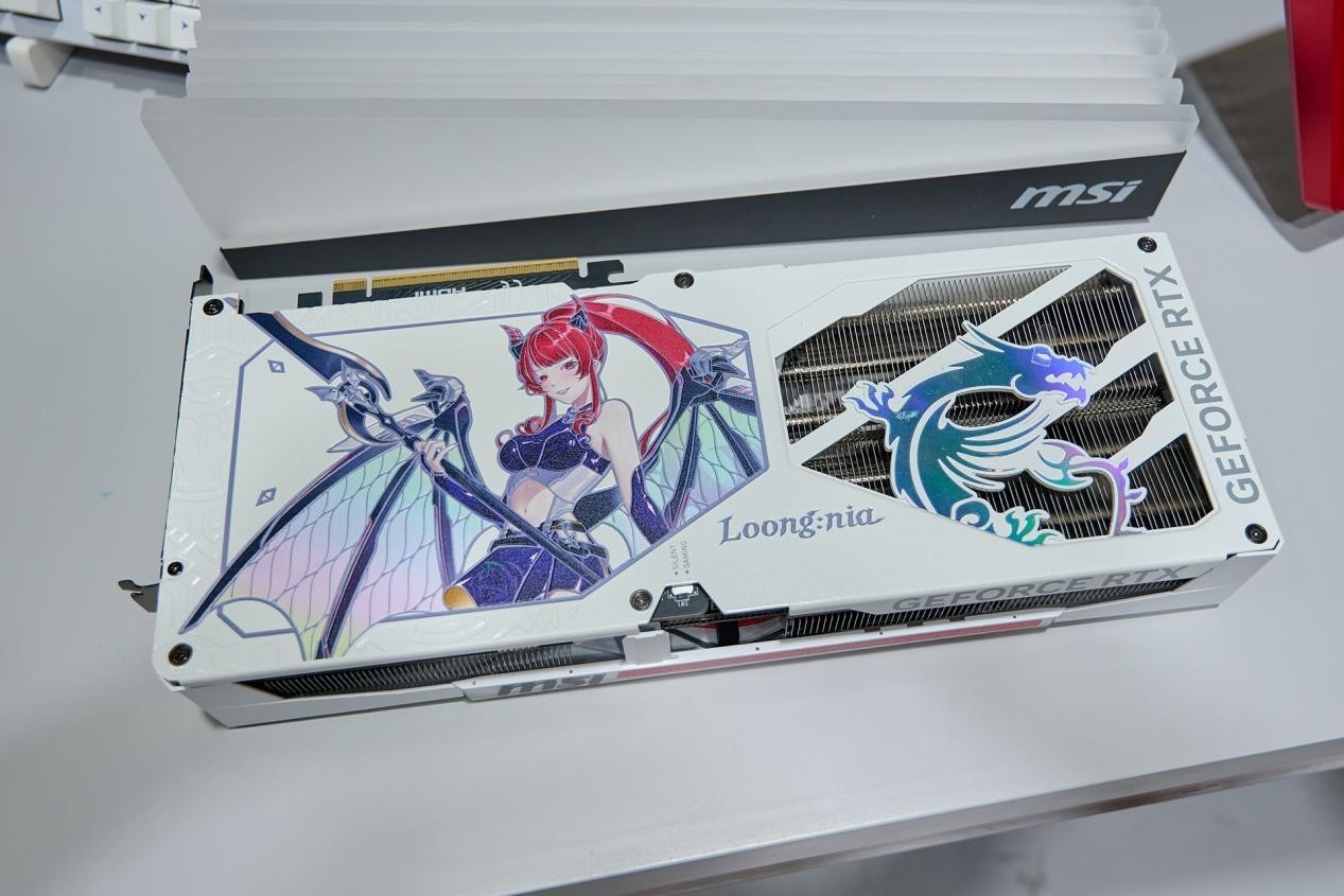 微星展台专设的“魔龙姬IP体验区”成为流量中心,与定制主机主题无缝呼应。微星科技不仅凭借魔龙姬全家桶硬件,和采用金属蚀刻工艺的定制版RTX 5070 Ti显卡成功俘获了二次元玩家和硬件爱好者的心,确保视觉风格统一。该显卡同样提供黑红与白红双版本,