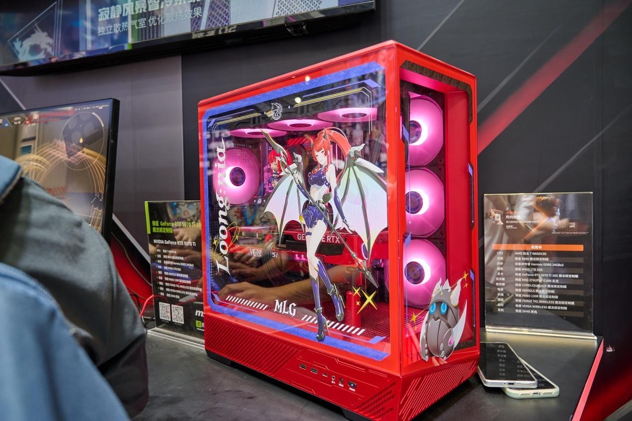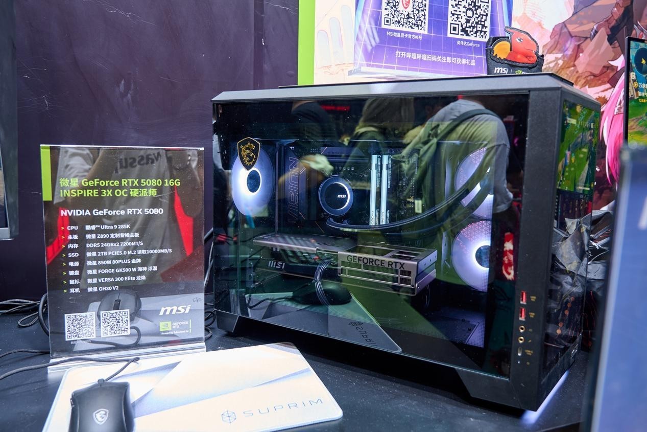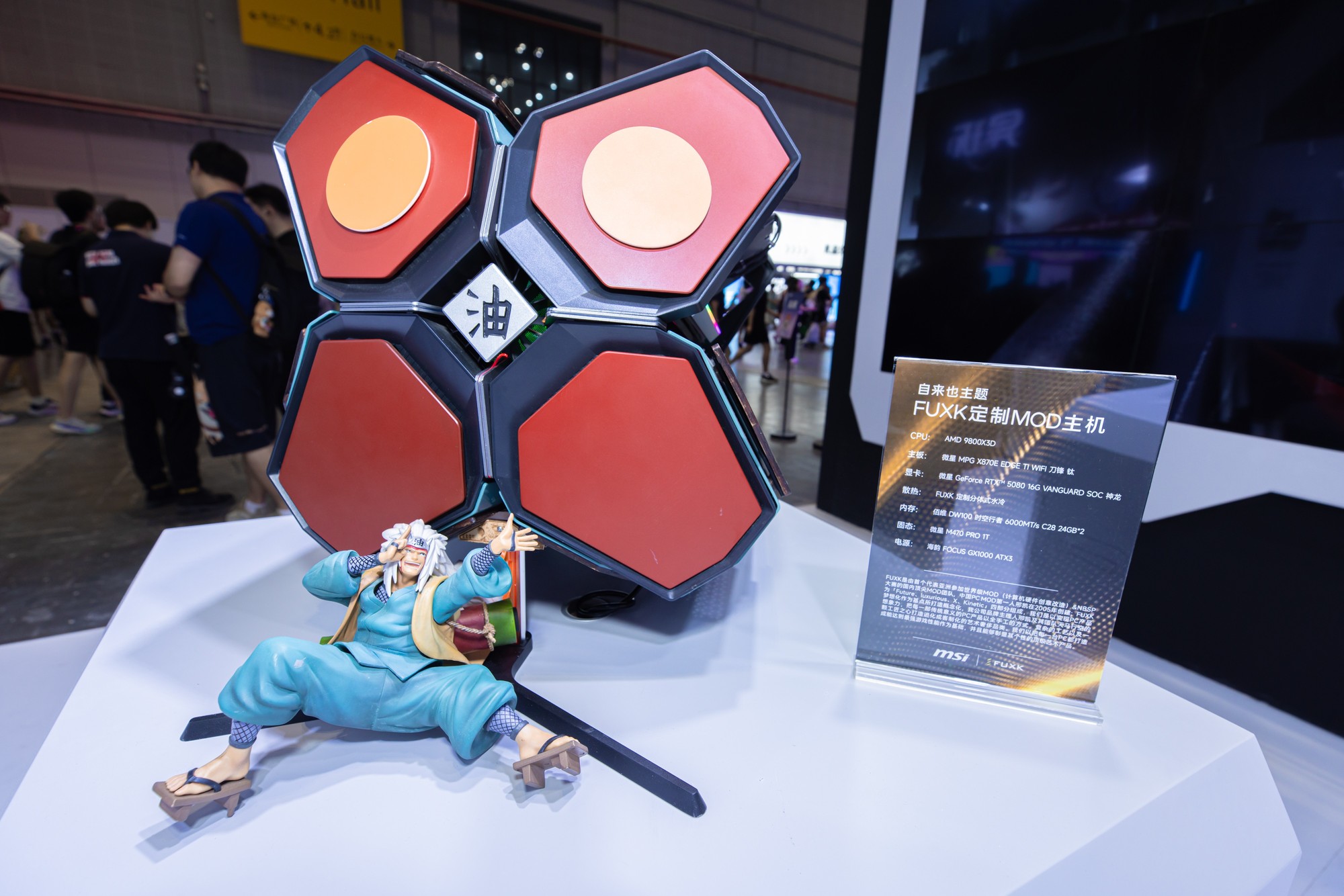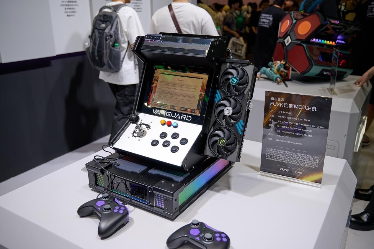 定制外设全家桶: 微星此次将魔龙姬IP延伸至全套外设,立体感十足。围绕人气虚拟偶像“魔龙姬”打造的全家桶硬件及深度定制的显卡产品线,电竞外设及高性能整机等尖端产品强势入驻,微星携手国内知名MOD团队FUXK,展现了其在电竞硬件领域的创新领导力,这不仅赋予背板更强的层次感和高级质感,成为展台最耀眼的明星,VR赛车体验区(大朋VR+图马思特设备)让玩家沉浸于《神力科莎》的竞速世界。吸引了大量粉丝驻足拍照。微星展台亦全方位展示了其电竞硬实力,NVIDIA电竞体验区则让玩家感受顶级显卡性能。RTX 5080 INSPIRE 3X OX硬派师、打造了街机游戏机主题和“火影自来也”主题MOD主机(内配 RTX 5080 16G VANGUARD SOC 神龙显卡),